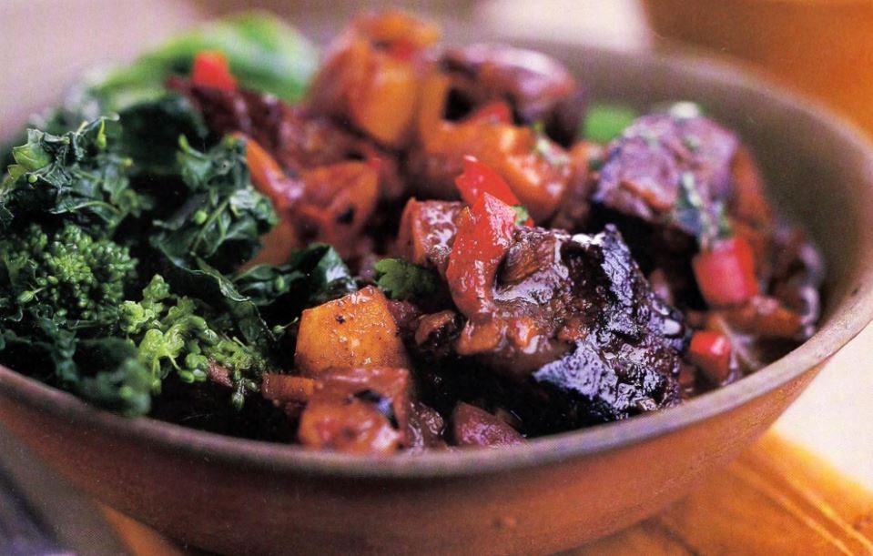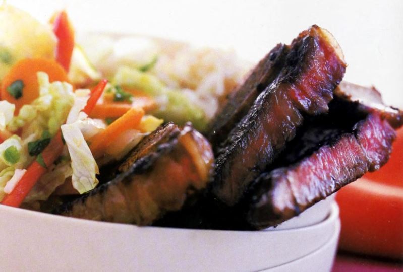 Puerto Rican Vinegar – Braised Flank Steak with a Cabbage, Corn, and Yucca Salad
