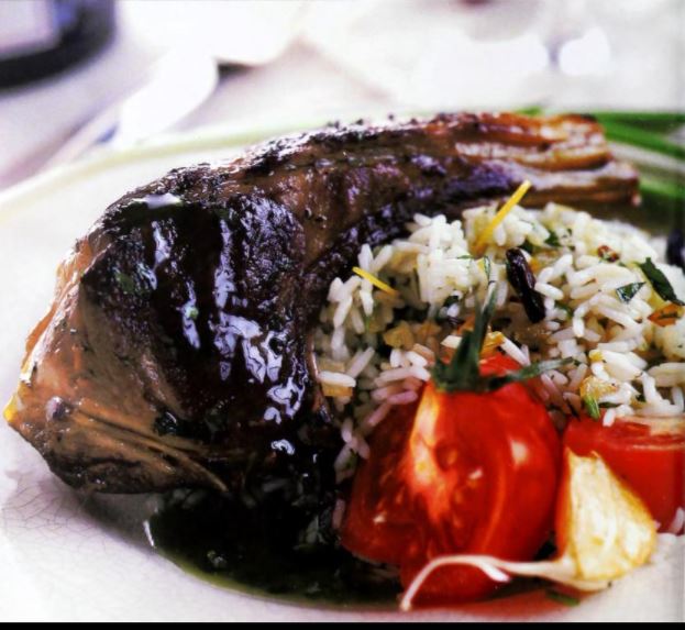 Grill Roasted Bone-In Leg of Lamb of Lamb with Grilled Peaches and Red Onion – Cilantro Salsa