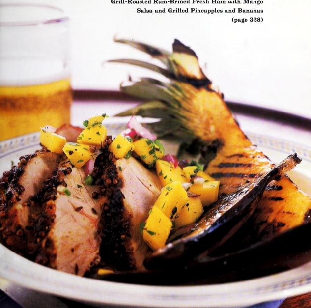 Grill Roasted Rum Brined Fresh Ham with Mango Salsa and Grilled Pineapples and Bananas
