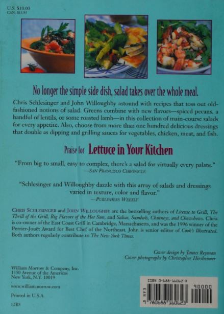 In fact, the word salad can be traced back to the day when some nameless Roman epicure sprinkled salt over a head of romaine lettuce and dubbed it herba salata, or ‘salted greens.’ Over the centuries, this term has expanded so much that it now includes many dishes that bear little resemblance to that primal leafy snack. But to me these dishes — potato salad, pasta salad, shrimp salad, and so on — may be delicious, but they aren’t really salads. My salads have got to include some of those greens.