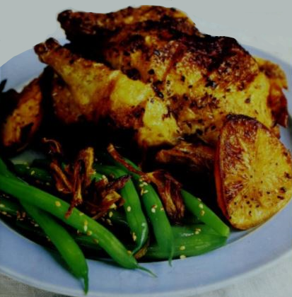 Corn Bread – Stuffed Barbecue Game Hens with Bourbon – Shallot Sauce