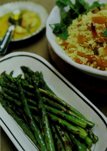 Bridget’s Couscous Salad for a Crowd, and Grilled Asparagus