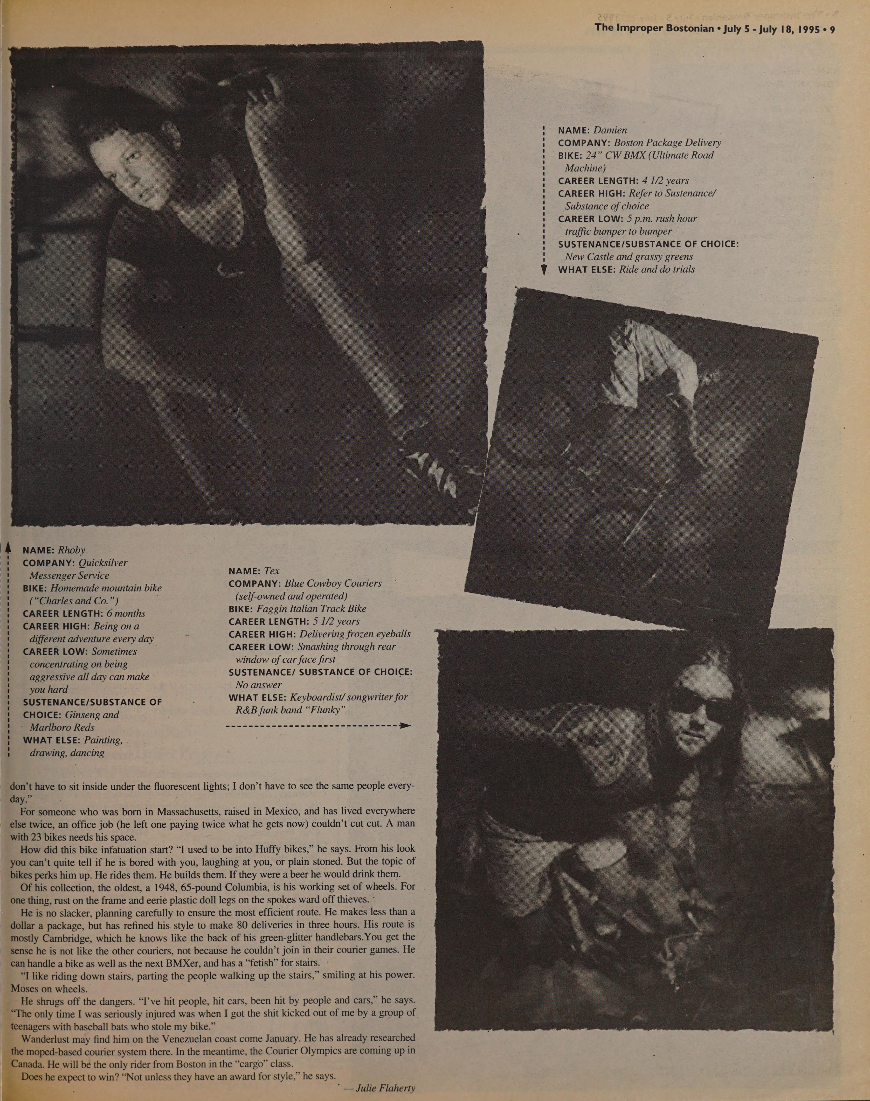 -Excerpt and images courtesy of Boston Public Library, The Improper Bostonian, “The New Pony Express,” photography by Kevin Morrill, July 5, 1995