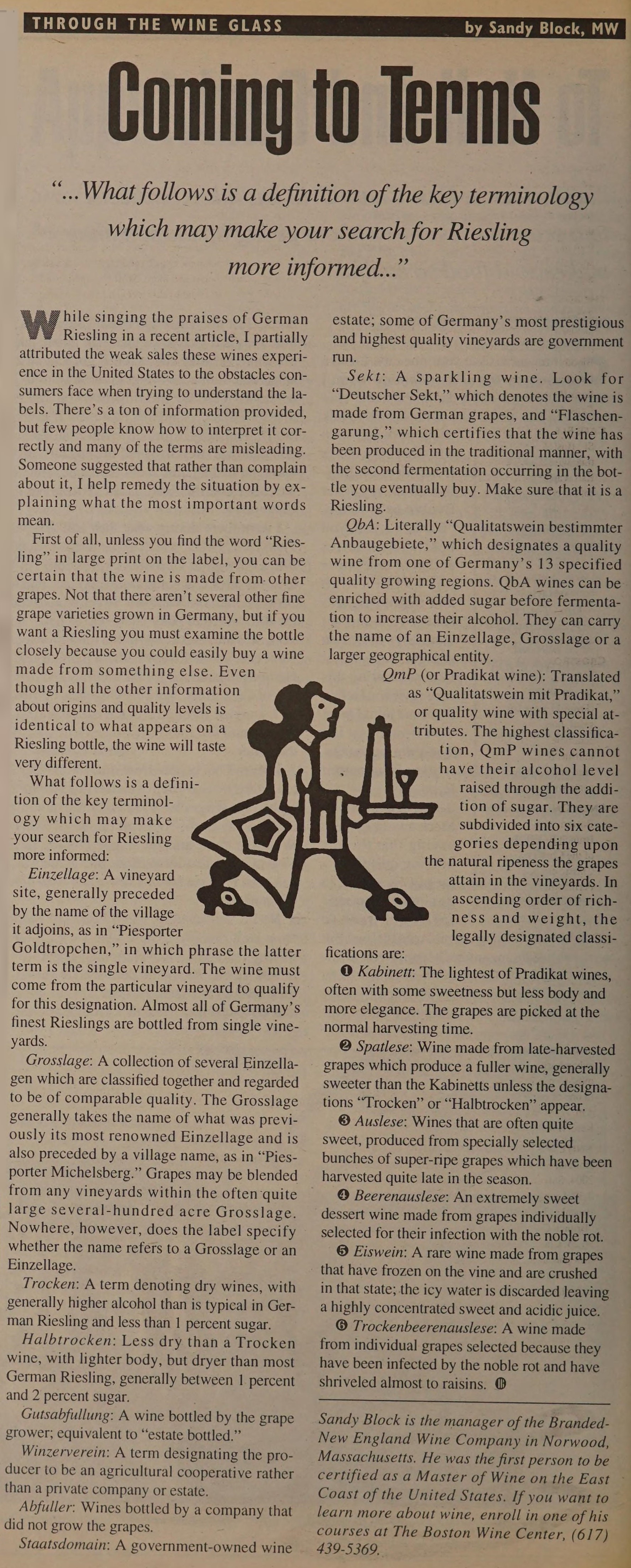 “Andy Husbands, executive chef of East Coast Grill, has resigned and is leaving on November 9 for LA-LA land to study the art of motorcycle maintenance and riding. When (and if) Andy tires of California dreaming, he intends to return to Boston.”