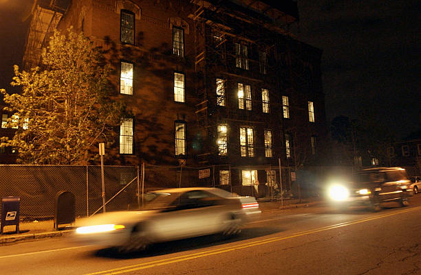 May 27, 2003 — The Cambridge City Hall Annex building located on Inman Street in Cambridge is under construction. Safety lights illuminate parts of the building during night hours. (Photo by John Bohn/The Boston Globe via Getty Images)