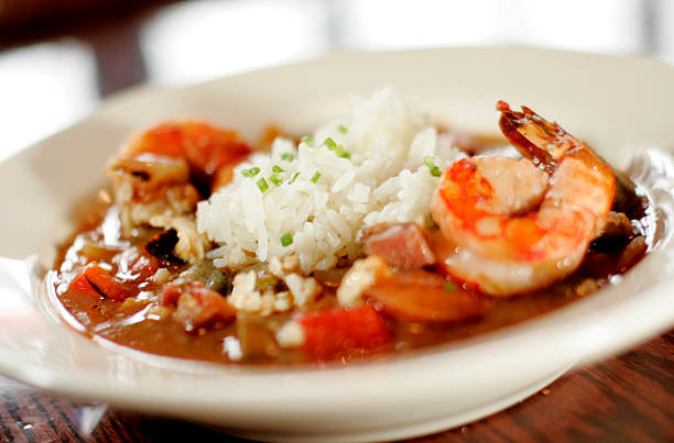 February 26, 2008 — Seafood gumbo, with anduille sausage and rice, at Highland Kitchen. (Photo by David Kamerman/The Boston Globe via Getty Images)