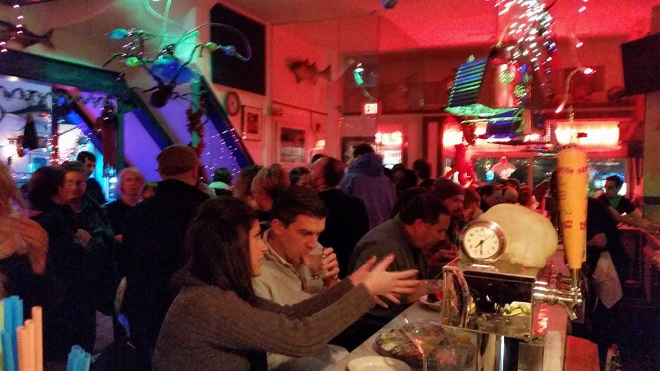 November 17, 2011 — Regulars Stefanie Guarino, second from right, and Chris Pirro chat. (Photo by Pat Greenhouse/The Boston Globe via Getty Images)