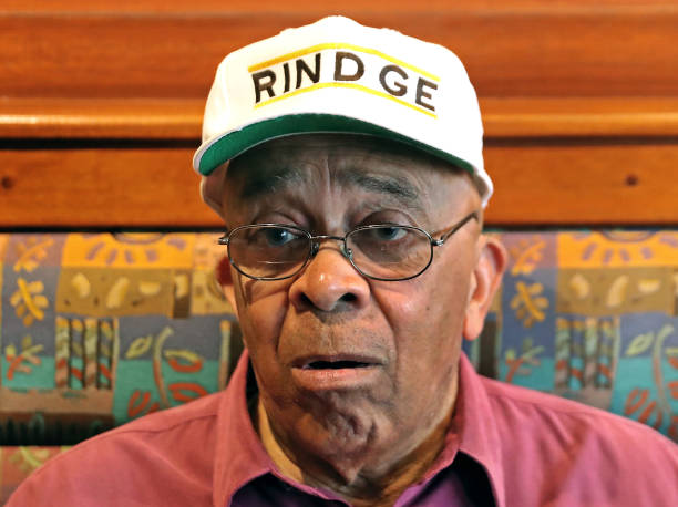October 3, 2018 — Bruce Grigsby wears a Rindge cap as members of the dominant Rindge Tech (now Rindge & Latin) track teams of the 1950s meet at the S&S Restaurant. (Photo by David L. Ryan/The Boston Globe via Getty Images)