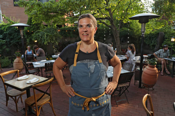 July 30, 2019 — Chef-owner Ana Sortun stands on the back patio at Oleana. (Photo by Matthew J. Lee/The Boston Globe via Getty Images)