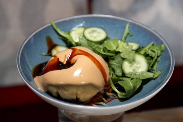 July 30, 2019 — Imam bayildi, stuffed eggplant with corn, peppers, and a dark tahini made with black sesame seeds at Oleana. (Photo by Matthew J. Lee/The Boston Globe via Getty Images)