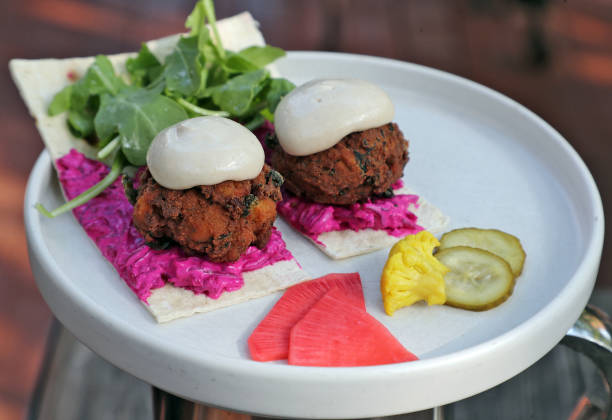 July 30, 2019 — The spinach falafel with tahini and beet yogurt at Oleana. (Photo by Matthew J. Lee/The Boston Globe via Getty Images)