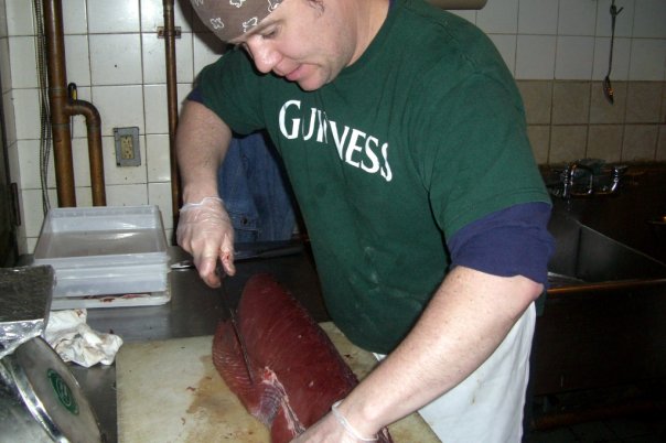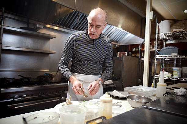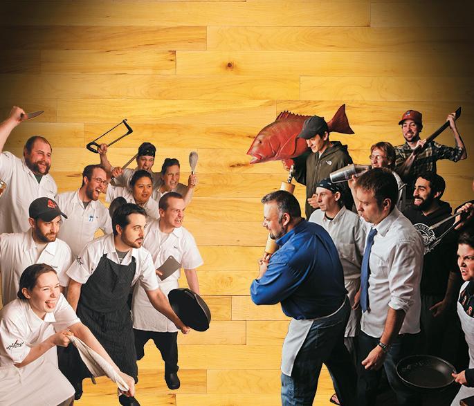 February 6, 2012 — Steve Johnson, the chef and owner of Rendezvous restaurant, deals daily with the issue of seafood sustainability and how to balance concerns about sustainability with customer demand, supporting local fishermen, seasonality. One of the dishes he features, when in season, is fried smelts with Meyer lemon and black olive vinaigrette ($9). (Photo by Dina Rudick/The Boston Globe via Getty Images)