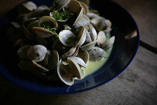 July 8, 2012 — Clams grown by Pat Woodbury in Wellfleet were served as the second course. (Photo by Tamir Kalifa for The Boston Globe via Getty Images)