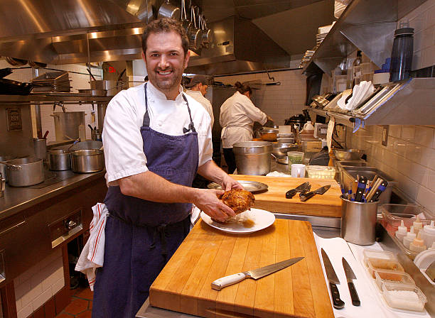 May 24, 2012 — Chef Tony Maws of Craigie on Main carves the restaurant’s whole roast chicken. (Photo by Barry Chin/The Boston Globe via Getty Images)