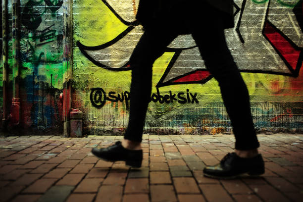 April 14, 2018 — A pedestrian passes through Richard B. Modica Way, also known as Graffiti Alley. (Photo by Jonathan Wiggs/The Boston Globe via Getty Images)