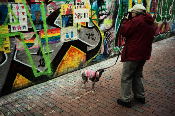 April 14, 2018 — The street is an 80-foot stretch of constantly changing graffiti, street art, signage, and posters. (Photo by Jonathan Wiggs/The Boston Globe via Getty Images)