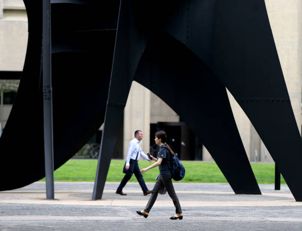 May 22, 2018 — People walk by the Alexander Calder Sculpture known as La Grande Voile (The Big Sail) at MIT. (Photo by Jonathan Wiggs/The Boston Globe via Getty Images)